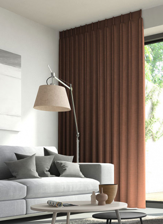 Kamerhoog overgordijn met ingeweven glans draadje.
